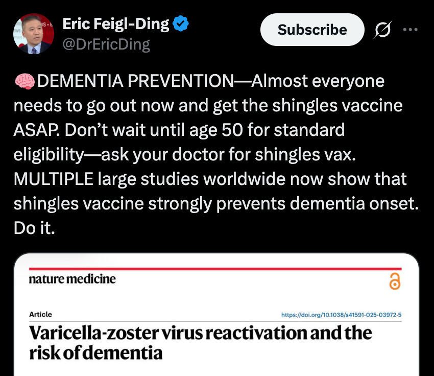 A growing body of peer‑reviewed research now suggests that vaccines recommended for older adults may provide benefits beyond preventing infection. Large population studies and massive systematic reviews now reveal something extraordinary: vaccination is consistently linked to substantially lower risks of dementia and cardiovascular disease.